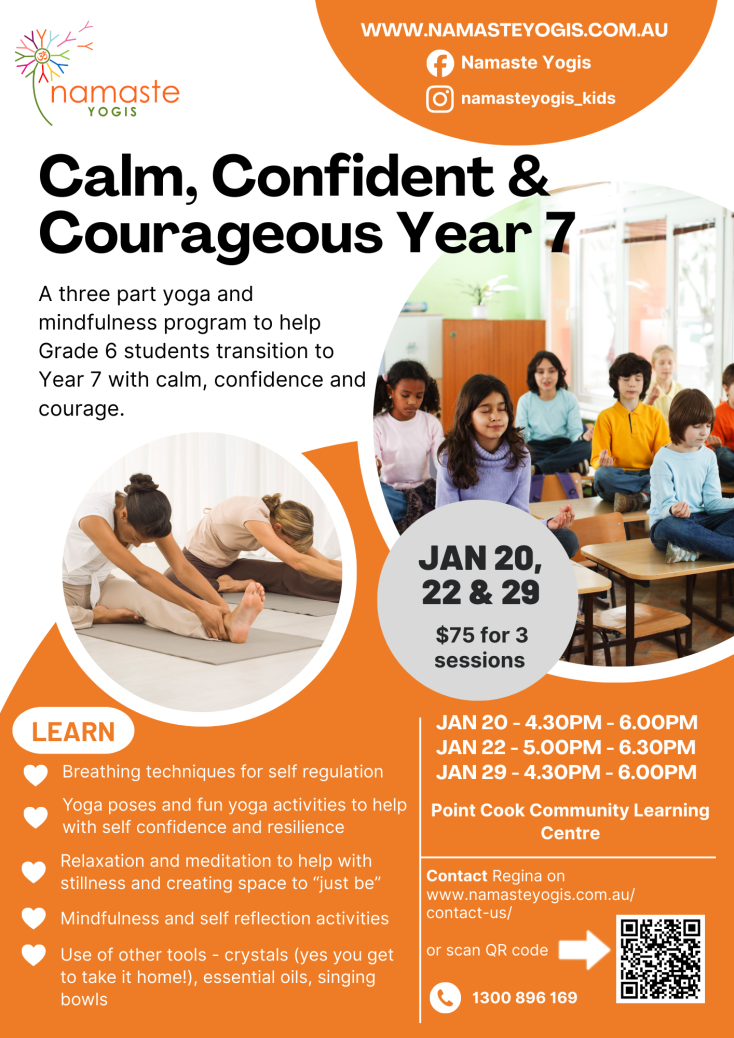 Kick off your Year 7 journey feeling calm, confident, and courageous! This 3 part yoga and mindfulness program is all about helping you navigate new challenges with a smile using yoga and mindfulness strategies. Meet new friends, learn cool tips, and build the mindset to take on anything that comes your way. Don’t miss out on a day packed with fun and growth – your best Year 7 starts here!