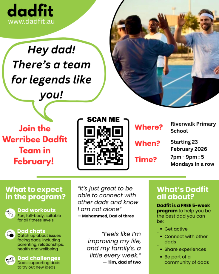 The program creates a safe, welcoming space where dads can move their bodies, clear their heads, and talk honestly about the highs, the lows, and everything in between. No judgement. No pressure. Just dads supporting dads.