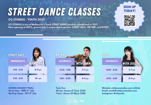 Street Dance Classes (ages 5-18yrs). Learn Hip Hop, KPop & Street Jazz in a fun environment with enthusiastic & qualified teachers. Our classes are beginner friendly so we would love to see you there.