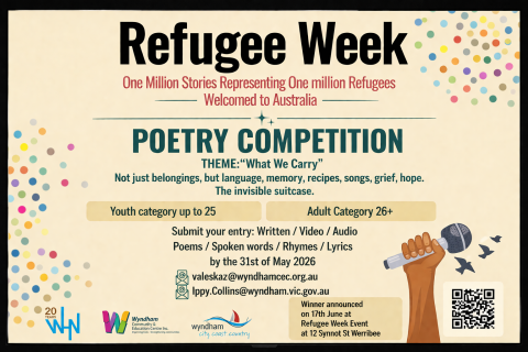 Competition winners will be announced live at the Refugee Week Event on 17 June 2026 at 12 Synnot Street, Werribee.